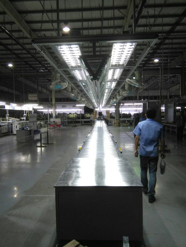 板鏈線原理和皮帶線一致,區(qū)別在于用鏈板連接而成取代了皮帶,較皮帶線的優(yōu)點在于不易磨損,抗沖擊能力大大加強,不易損壞,可以實現(xiàn)較重的產品的運輸。