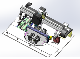 汽車儀表壓針設備采用4軸伺服模組組合形成的龍門式4軸機器人,取針方式采用伸縮式吸嘴+薄片夾緊機構組合而成,滿足取壓針功能,配合機器視覺做精確補償,其優(yōu)勢在于定位精度高,取針穩(wěn)定,可有效的保證壓力值,指針零位以及高度的穩(wěn)定性。